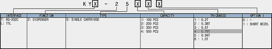 KYT-2500 Series Intelligent Card Dispenser Single Cartridge Features Very compact size Easy card loading & maintenance High reliability with simple and robust structure Easy card loading & maintenance RS-232C or TTL Interfrace